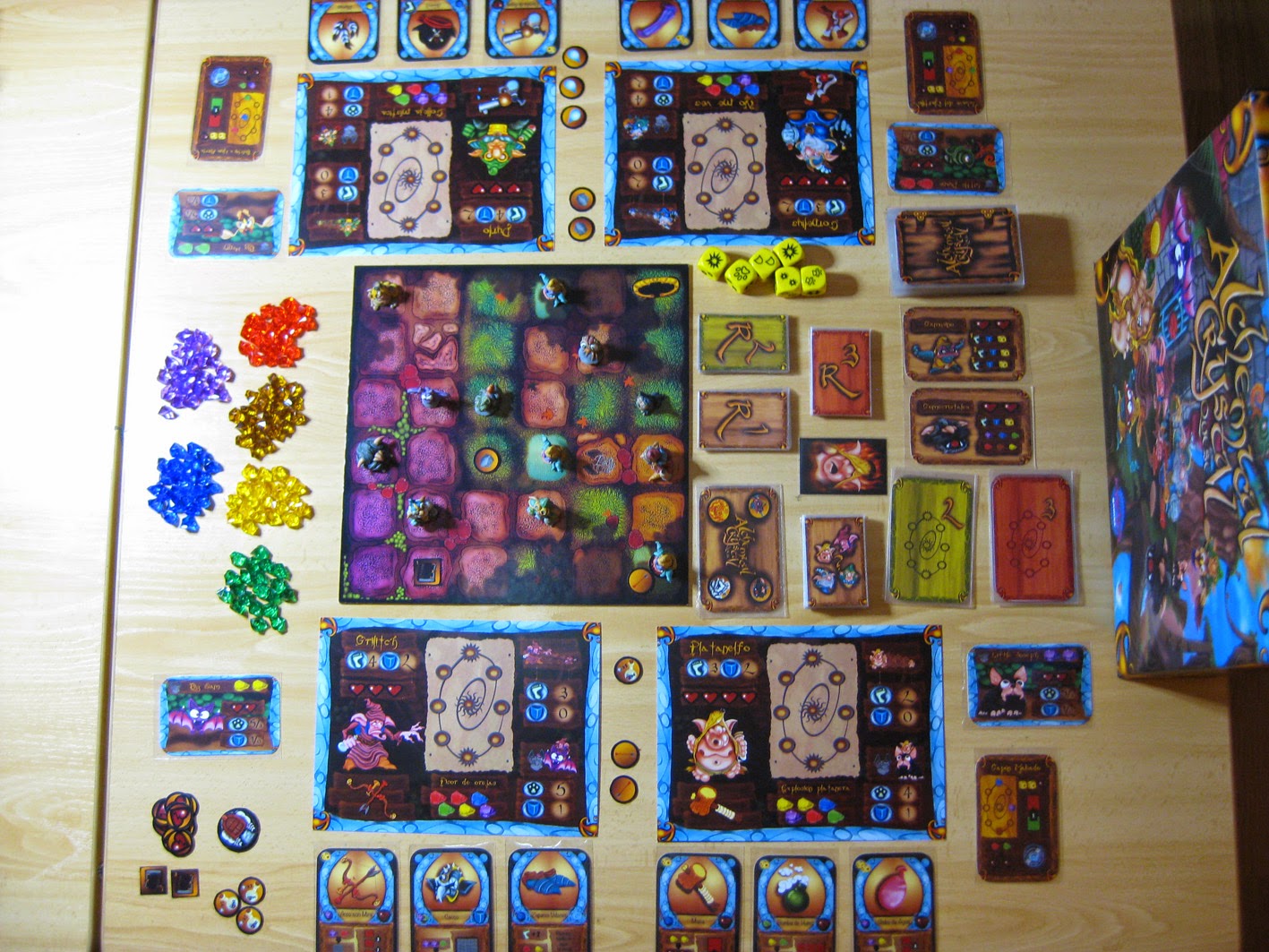 Se trata de un juego cooperativo, de tablero modular, en el que tomaremos el control de un mago alquimista, con la misión de rescatar a su profesor de las garras del malvado mago Darktonio.