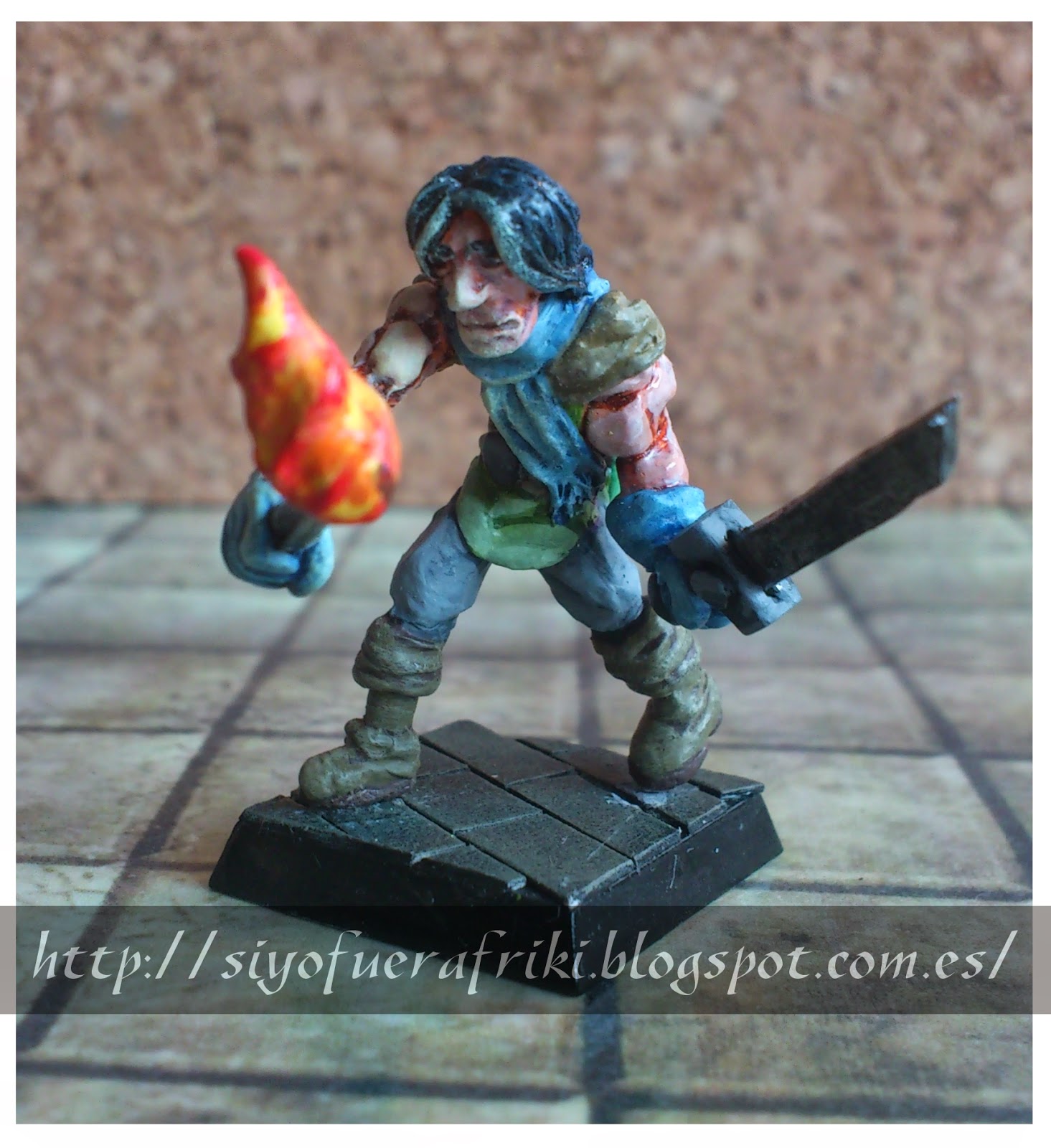 La pintura en general no es gran cosa, la verdad es que creo que he pintado cosas bastante mejor, pero fue un poco speed paint. Pero sobretodo el efecto del reflejo de la luz de la antorcha en cara, cuerpo y brazo me ha quedado fatal así que os pregunto ¿Como lo haceis vosotros? ¿algun consejo para pintar ese tipo de efecto?