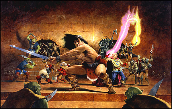 Esta vez el compañero del valiente Maestro de Armas fue un hábil y astuto Elfo. Mano a mano fueron salvando los obstáculos y eliminando a todo el que se cruzaba en su camino... hasta que llegaron a la antesala del Señor Orco. Ahí comenzó una cruenta batalla en la que salieron con vida, pero muy debilitados. Intentando reponerse buscaron detenidamente por cada rincón algo con lo que curar sus heridas y en el momento menos esperado el Maestro de Armas se topó con una criatura errante a la que no pudo dar muerte y que acabó finalmente con su vida. Perdida toda esperanza, apareció el Clérigo. Con sus hechizos sanadores ayudó a un malherido Elfo y juntos pudieron derrotar a un resistente Ulag tras una épica lucha.
